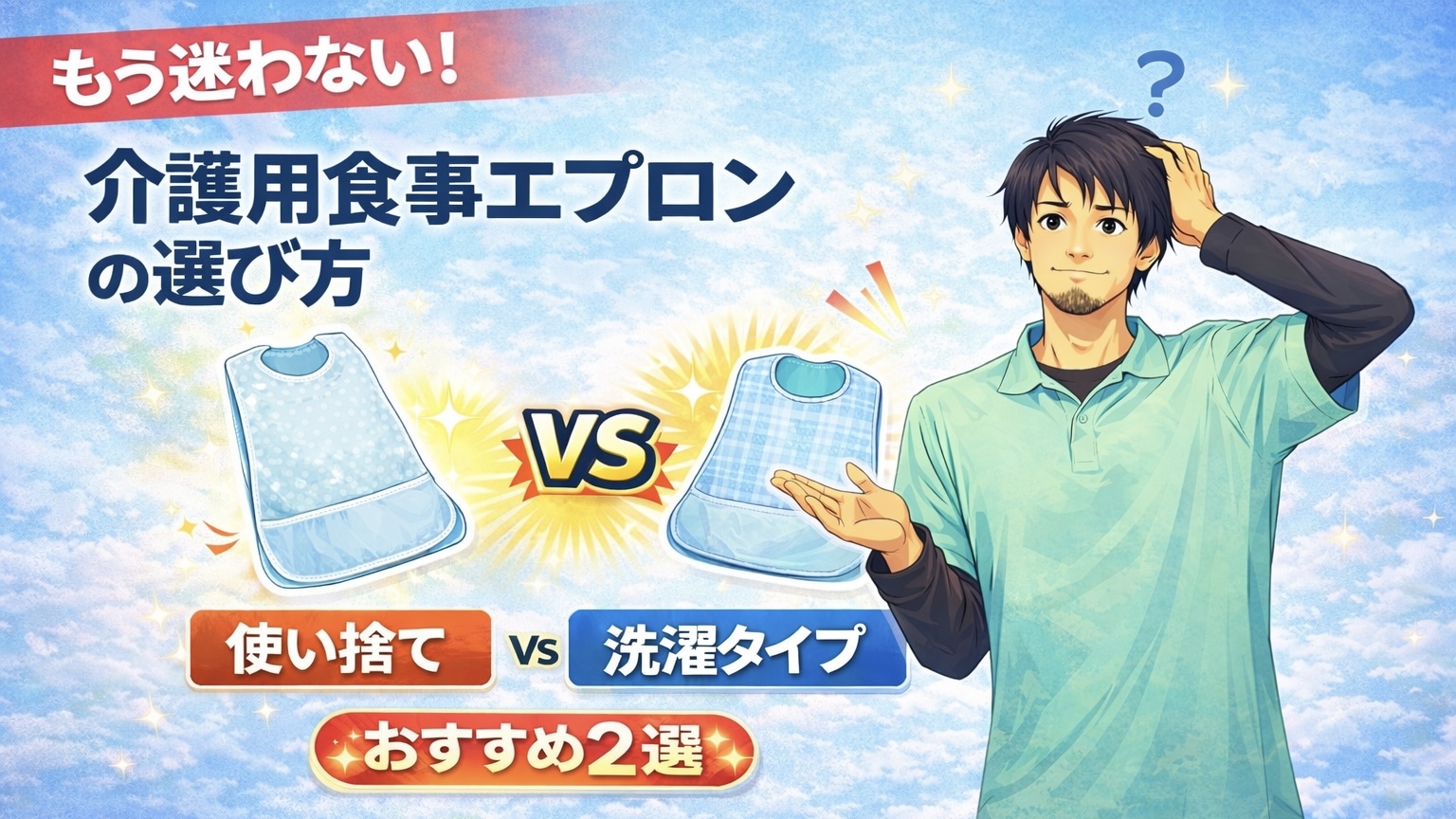 - もう迷わない!介護用食事エプロンの選び方|使い捨てvs洗濯タイプおすすめ2選