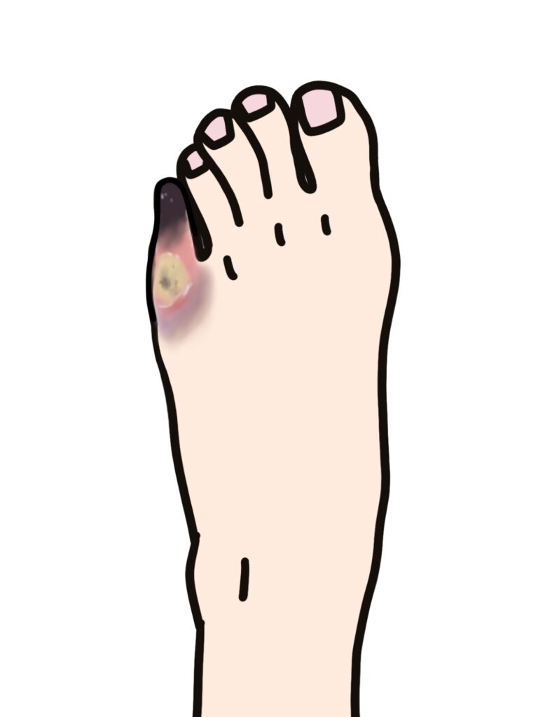 血流障害や免疫力低下により、わずかな擦り傷でも