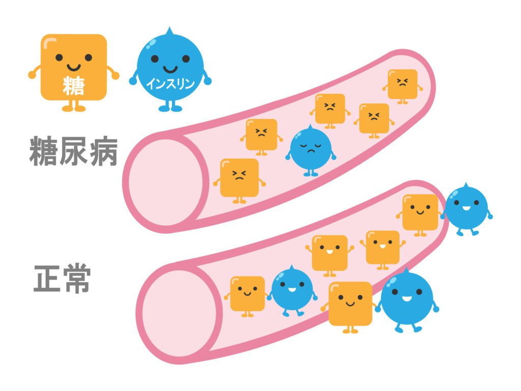 糖尿病とは、血液中のブドウ糖(血糖)が慢性的に高くなる病気です。