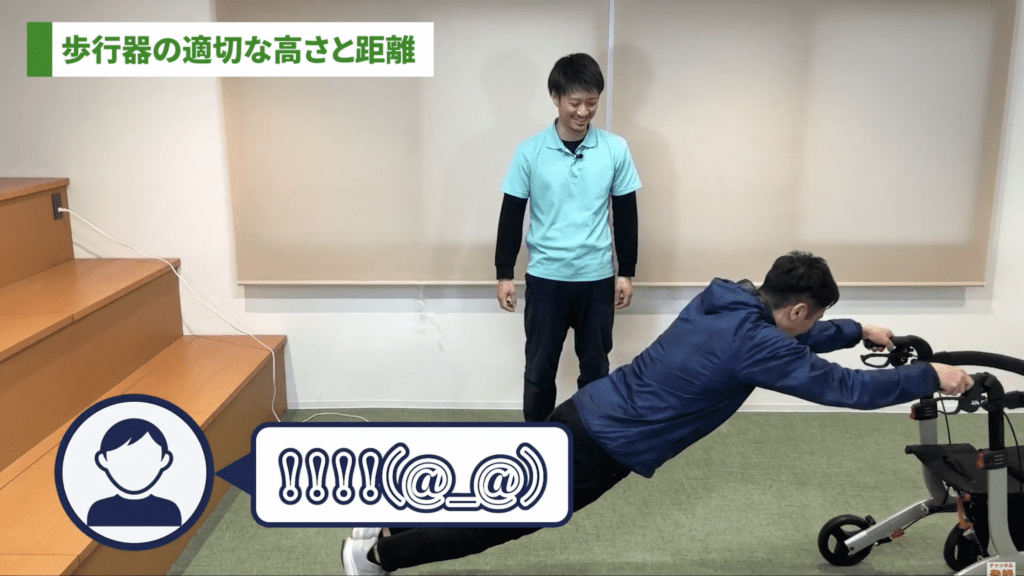 ※歩行器とシルバーカーの使い分けや、体重のかけ方について、実際の動きを交えて詳しく解説しています。