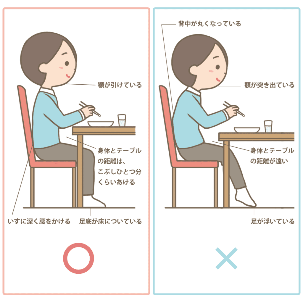 食べこぼしの多くは、「姿勢の崩れ」が原因です。