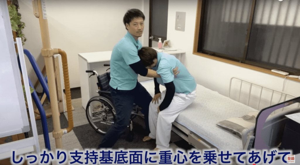 どれだけ筋力がある介助者でも、このワンアクションが抜けるだけで、全ての動作が重たくなり、ご利用者様の負担も増えてしまいます。これは全介助のご利用者様にも言えることです。