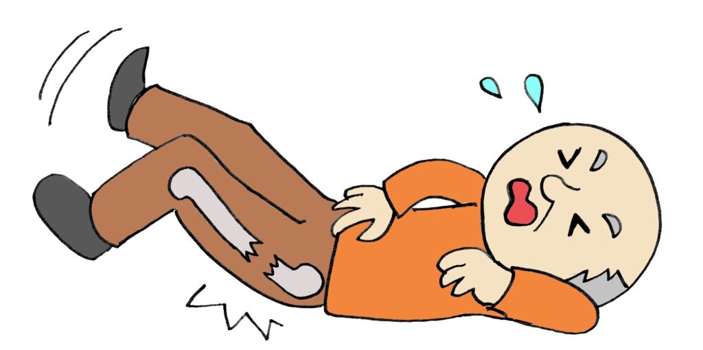 また、ズボンやおむつは体を支えるために作られたものではないので、強く引っ張ることで破れてしまう可能性もあり、その瞬間にバランスを崩して転倒してしまう危険性も高まります。